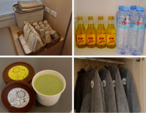 "เราเตรียมอุปกรณ์เพื่อการใช้บริการซาวน่าที่สะดวกสบาย รวมถึงผ้าเช็ดตัว ผ้าขนหนูผืนเล็ก หมวกซาวน่า เสื้อคลุมซาวน่า เครื่องดื่ม และ ไอศครีมโฮมเมด กรุณานำชุดว่ายน้ำของท่านมาเอง หากต้องการเช่า ชุดว่ายน้ำทางเรามีให้บริการในราคา 100 บาท มีจำนวนจำกัด (สำหรับผู้ชายเท่านั้น))